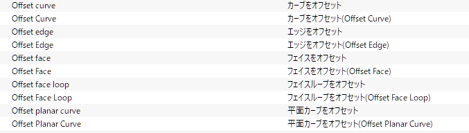 ちなみに文字列として同じコマンドでも「Offset Curve」と「Offset curve」と両単語の頭文字が大文字の物とそうでない物の2種類がありました。