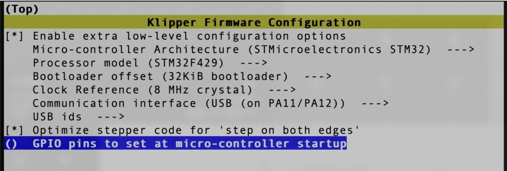 一度焼いておしまいなら直接Klipperを焼いても良いんですがアップデートした際MCUのファームとのバージョンが離れてくると入れ直しが必要になります。